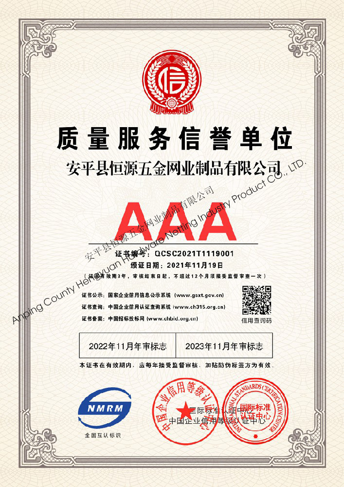 多年來(lái),安平縣恒源五金網(wǎng)業(yè)制品有限公司堅(jiān)持“科技興企、質(zhì)量立業(yè)”的經(jīng)營(yíng)理念和“誠(chéng)心為本、客戶(hù)至上”的合作宗旨,優(yōu)化生產(chǎn)工藝,打造優(yōu)質(zhì)產(chǎn)品,提供完善的服務(wù),受到國(guó)內(nèi)外客戶(hù)的一致好評(píng),產(chǎn)品行銷(xiāo)全國(guó)各地,并出口美國(guó)、德國(guó)、韓國(guó)、日本、臺(tái)灣等國(guó)家和地區(qū)。